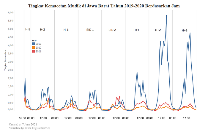 Kabupaten/Kota yang biasanya menjadi destinasi mudik seperti Kota Banjar, Kab. Pangandaran, Kabupaten Sumedang, Kabupaten Kuningan, Kabupaten Ciamis dan Kabupaten Majalengka justru menjadi wilayah dengan penurunan tingkat kemacetan tertinggi yaitu sekitar 93% sampai 99% pada tahun 2020–2021 jika dibandingkan mudik 2019. Sedangkan Kabupaten/Kota besar di wilayah Bodebek dan Bandung Raya seperti Kabupaten Bogor, Kota Bandung, Kota Depok, Kabupaten Bekasi, dan Kota Bekasi menjadi wilayah dengan penurunan tingkat kemacetan terendah yaitu 29% sampai 55%.